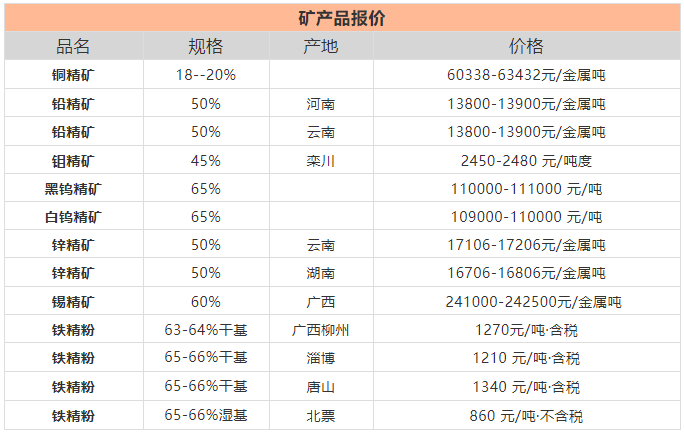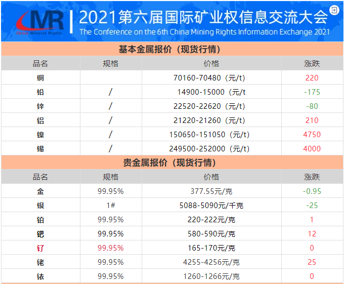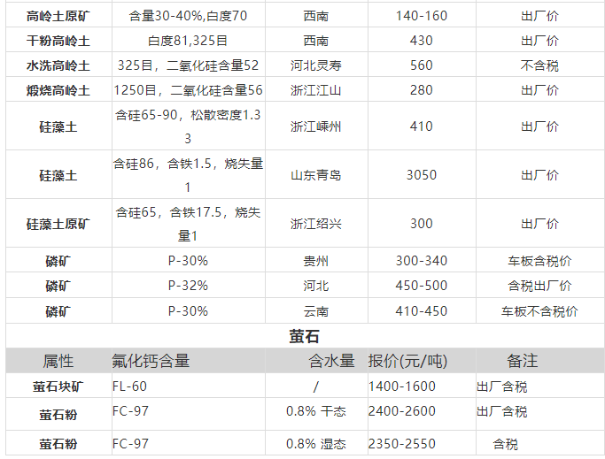 2021年8月31日金屬、非金屬礦產(chǎn)品報(bào)價(jià)